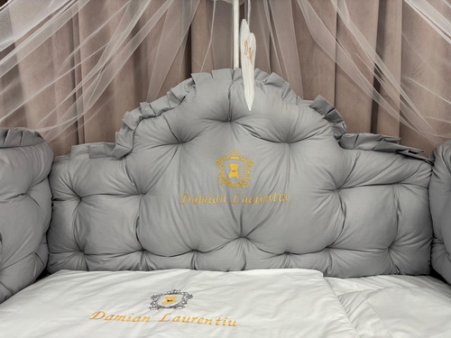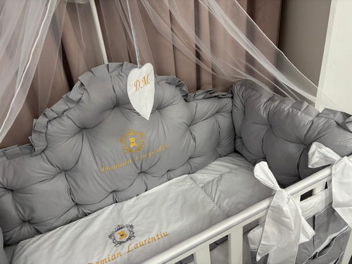 PEPPIbambini ROYAL Grey Terciopelo 11 Piezas Juego de Ropa de Cama para Cuna, 100% Algodón con bordado + Mosquitera